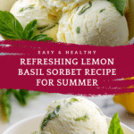 A refreshing Lemon Basil Sorbet that combines the zesty brightness of fresh lemon juice with the aromatic essence of basil leaves, perfect for a cooling summer treat. This dairy-free, naturally sweetened sorbet is easy to prepare and offers a perfect balance of tangy and herbal flavors ideal for hot days.