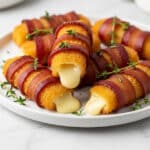 Keywords: low carb appetizer, bacon wrapped cheese sticks, Nashville hot mozzarella, gluten free snack, keto friendly appetizer, spicy bacon cheese sticks