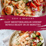Keywords: Mediterranean shrimp bowl, lemon shrimp, tomato cucumber salsa, healthy shrimp recipe, easy shrimp dinner, shrimp and rice bowl