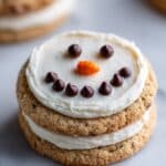 Store these cookies in an airtight container at room temperature for up to 3 days. To preserve the marshmallow and decorations, avoid refrigeration as it can cause the marshmallows to become sticky. If you need to store them longer, freeze the cookies without decorations and add the melted snowman details after thawing.
