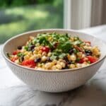 This vibrant Mexican Corn Salad is a delightful and refreshing dish featuring sweet corn, black beans, hominy, and zesty tomatoes, all tossed in a flavorful lime and cumin dressing. Perfect for gatherings, it serves as a salad, dip, or taco topping, bringing a burst of summer flavors any time of year.