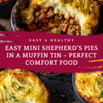 Keywords: mini shepherd’s pies, comfort food, ground beef recipes, muffin tin recipes, cozy dinner