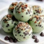 These Mint Chocolate Chip Protein Balls are a delicious, no-bake snack packed with protein and a refreshing hint of peppermint. Perfect for a quick energy boost or a healthy treat, they combine creamy almond butter, oats, and mini dark chocolate chips for a satisfying bite.