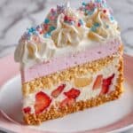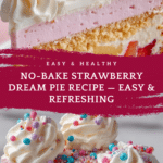 - Decorate and serve: Before serving, pipe whipped cream decoratively on top of the pie and generously sprinkle with colorful sprinkles. Slice and enjoy your no-bake strawberry dream pie!