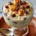 This Old-Fashioned Rice Pudding is a warm and comforting dessert featuring tender rice slowly cooked in sweetened whole milk and flavored with vanilla, cinnamon, and a hint of nutmeg. Creamy and nostalgic, it can be enjoyed warm or chilled for a firmer texture, with optional raisins adding a classic touch.