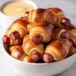 Pigs in a Blanket are a classic party appetizer featuring cocktail-sized weenies wrapped in flaky crescent roll dough, baked to golden perfection, and served with a sweet and tangy honey mustard dipping sauce. This easy-to-make recipe is perfect for gatherings, snacks, or game day treats.