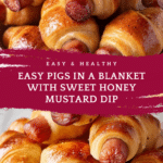 Store leftover pigs in a blanket in an airtight container in the refrigerator for up to 3 days. Reheat in the oven at 350°F (175°C) for 5-7 minutes to maintain crispness. The honey mustard sauce can be kept covered in the fridge for up to a week.