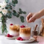 6. Assemble Macchiato: Pour the prepared espresso over the raspberry milk and ice. Serve immediately and enjoy the layered flavors.