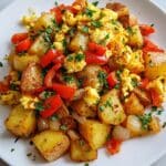 This Potato Egg Scramble is a hearty and delicious breakfast dish combining crispy sautéed potatoes with fluffy scrambled eggs, vibrant vegetables, and melted cheese. Perfect for a quick and satisfying meal, it can be customized with your favorite cooked meats and fresh herbs for added flavor.