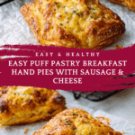 Keywords: puff pastry, breakfast hand pies, sausage, eggs, cheddar cheese, handheld breakfast, brunch
