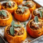 These Pumpkin and Sausage Stuffed Mini Pumpkins are a festive and hearty appetizer that combine savory Italian sausage with creamy pumpkin puree and aromatic spices, all baked inside tender mini pumpkin shells for an impressive seasonal treat.