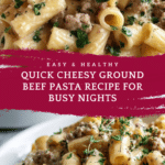 This Quick Cheesy Ground Beef Pasta is a comforting and flavorful weeknight meal that comes together in just about 20 minutes. Packed with savory beef, melted mozzarella, and a touch of spice, it’s an easy dish the whole family will love.