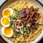 This Ramen Carbonara recipe fuses the creamy, cheesy indulgence of classic Italian carbonara with the convenience and fun of instant ramen noodles. Crispy pancetta and a silky egg-Parmesan sauce come together quickly for a satisfying, flavorful dish perfect for a quick dinner or comforting lunch.