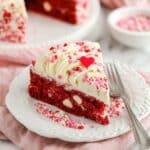 This Red Velvet Cookie Cake combines the rich, classic flavors of red velvet with the chewy texture of a cookie, finished with a smooth cream cheese frosting and festive sprinkles. Perfect for celebrations or a delightful dessert.