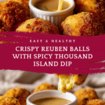 Delicious and crispy Reuben Balls served with a spicy Thousand Island dipping sauce. These bite-sized appetizers are filled with classic Reuben ingredients—corned beef, sauerkraut, Swiss and cream cheeses—and perfectly seasoned for a flavorful snack or party treat. They can be fried or air-fried for a lighter option.