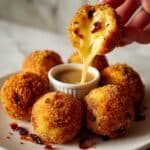 Reuben Balls are a fun and flavorful twist on the classic Reuben sandwich, perfect for parties or snacks. These crispy, cheesy bites combine tender corned beef, tangy sauerkraut, and Swiss cheese, served with a spicy Thousand Island dipping sauce that packs a delicious punch.