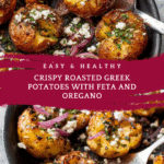 Keywords: Greek roasted potatoes, feta cheese potatoes, oregano potatoes, roasted baby potatoes, Mediterranean side dish, baked potatoes with feta