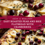 Keywords: roasted pear flatbread, cranberry flatbread, Brie flatbread, sweet and savory flatbread, autumn flatbread recipe, easy flatbread recipe