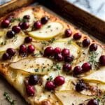 Keywords: roasted pear flatbread, cranberry flatbread, Brie flatbread, sweet and savory flatbread, autumn flatbread recipe, easy flatbread recipe