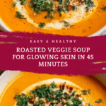 Keywords: roasted vegetable soup, skin health soup, healthy soup, glowing skin recipe, vegan soup, low sodium soup, carrot soup, roasted bell pepper soup