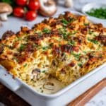 This Savory Stuffed Mushroom Casserole is a comforting and flavorful dish perfect for cozy nights in. It features sautéed white mushrooms blended with creamy cheese, garlic, and aromatic herbs, topped with a golden, crunchy breadcrumb and Parmesan crust. Baked to bubbly perfection, it’s a luscious vegetarian casserole that can serve as a hearty side or a satisfying main.