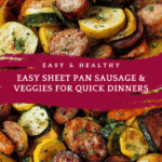 Keywords: sheet pan sausage recipe, roasted vegetables, one-pan meal, easy dinner, Italian sausage recipe, healthy sausage and veggies, quick weeknight dinner