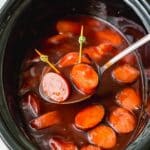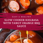 Keywords: slow cooker kielbasa, kielbasa recipe, slow cooked sausage, barbecue kielbasa, easy kielbasa recipe, party appetizer