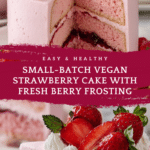 Keywords: vegan strawberry cake, small batch cake, strawberry frosting, vegan cake recipe, berry cake, dairy-free dessert