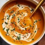 A comforting and creamy gluten and dairy free sweet potato soup made with tender sweet potatoes, aromatic vegetables, smoky paprika, and coconut milk. Perfect for chilly evenings, this nutritious soup blends simple, wholesome ingredients into a smooth, flavorful dish everyone can enjoy.