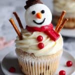 Delight in these whimsical Snowman Cupcakes, perfect for festive gatherings. Each cupcake is topped with a creamy vanilla frosting, a cute marshmallow snowman face, and decorated with fun candies and pretzel arms. They’re as tasty as they are charming, making holiday baking fun and easy.