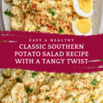 This classic Southern Potato Salad is a creamy, tangy, and perfectly seasoned side dish made with tender white potatoes, creamy mayonnaise, tangy pickles, and hard-boiled eggs. Ideal for picnics, barbecues, and family gatherings, this recipe balances a hint of sweetness with savory spices for an authentic Southern flavor.