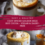 This Spiced Golden Milk Hot Cocoa is a comforting, dairy-free, and vegan-friendly beverage that combines the rich flavors of dark chocolate and warming spices like turmeric, cinnamon, and ginger. Infused with turmeric’s powerful anti-inflammatory properties and lightly sweetened with honey or maple syrup, this drink is perfect for a cozy cold weather treat that is healthy and nourishing.