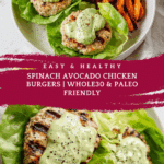 These Spinach Avocado Chicken Burgers are a wholesome, nutrient-dense option perfect for Whole30, Paleo, and AIP diets. Featuring tender ground chicken mixed with fresh spinach, cilantro, and creamy avocado, these burgers are enhanced with homemade avocado mayo for a flavorful, healthy meal. Grilled to juicy perfection and served in butter lettuce cups, they offer a delicious low-carb alternative to traditional burgers.