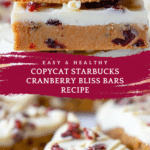 Keywords: Starbucks Copycat, Cranberry Bliss Bars, Holiday Bars, White Chocolate Bars, Cream Cheese Frosting, Cranberry Dessert