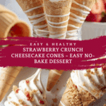 Delight in these Strawberry Crunch Cheesecake Cones, a fun and elegant twist on traditional cheesecake. Golden Oreo cookie crumbs blended with strawberry gelatin create a crispy, colorful crunch that coats white chocolate-dipped waffle cones. Filled with a smooth, fluffy cream cheese and whipped cream mixture, and topped with fresh strawberries and extra crunch, this no-bake dessert is perfect for parties or a sweet treat any time.