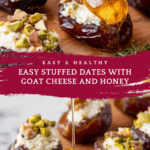 Keywords: stuffed dates, goat cheese appetizer, Medjool dates recipe, easy appetizers, cheesy stuffed dates, honey drizzled dates, savory sweet snacks