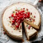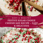 Keywords: sugar cookie cheesecake, festive cheesecake, holiday dessert, sugar cookie crust, creamy cheesecake