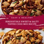 This Sweet & Salty Toffee Chex Mix is a deliciously addictive snack that combines crunchy Chex cereal, mini pretzels, and salted peanuts coated in a rich toffee butter sauce. Baked to perfection and optionally mixed with mini M&Ms or chocolate chips for an extra hint of sweetness, this treat is perfect for parties, holidays, or anytime snacking.