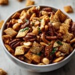 This Sweet & Salty Toffee Chex Mix is the perfect blend of crunchy, buttery, and lightly sweetened snack that’s great for any occasion. With a mix of Chex cereal, pretzels, and peanuts coated in a rich toffee sauce, it’s equally addictive for movie nights or holiday gatherings.