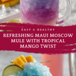The Maui Moscow Mule is a vibrant and refreshing twist on the classic Moscow Mule cocktail, featuring KINKY Pink vodka liqueur, fresh lime juice, and a splash of hard ginger beer. This tropical-inspired drink is enhanced with colorful butterfly pea flower ice cubes and garnished with fresh mango and lime wedges, making it both visually stunning and delicious.