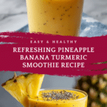 This Tropical Glow Pineapple Banana Turmeric Smoothie is a refreshing and vibrant drink packed with natural sweetness and a hint of spice. Perfect for a quick breakfast or a healthy snack, it combines tropical fruits with the anti-inflammatory benefits of turmeric and ginger.