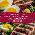 Keywords: Tuna Niçoise Salad, seared ahi tuna, Mediterranean salad, healthy tuna recipe, low carb salad, French salad, tataki tuna, fresh vegetable salad, lemon mustard dressing