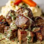 - Serve steak bites with crusty bread or over a bed of mashed potatoes for a satisfying meal.