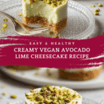 This Avocado Cheesecake with Lime is a refreshing, vegan-friendly dessert that’s creamy and delicious without any baking required. Featuring a crunchy digestive biscuit base and a smooth avocado-lime cream cheese topping, it’s perfect for a light, tangy treat. The hint of lime zest and juice brightens the flavors, while chopped pistachios add a delightful crunch.