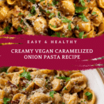 Keywords: vegan pasta, caramelized onion pasta, creamy vegan pasta, plant-based dinner, orecchiette recipe, easy vegan dinner, Italian vegan recipe