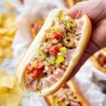 Keywords: Italian sandwich, chopped sandwich, hoagie sandwich, deli meat sandwich, provolone sandwich, easy Italian sandwich, no cook sandwich