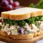 A classic and refreshing Waldorf Chicken Salad combining tender chicken, crunchy walnuts, crisp celery, sweet grapes, and apples, all tossed in a creamy Greek yogurt and mayonnaise dressing with a hint of lemon. Perfect for sandwiches, wraps, or served on a bed of lettuce.