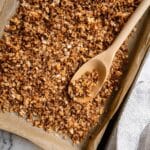 - Step 3: Transfer the mixture onto the prepared baking sheet and spread it out evenly. Bake for 25-30 minutes, stirring halfway through to ensure even cooking. Remove from the oven and let cool slightly on the baking sheet.